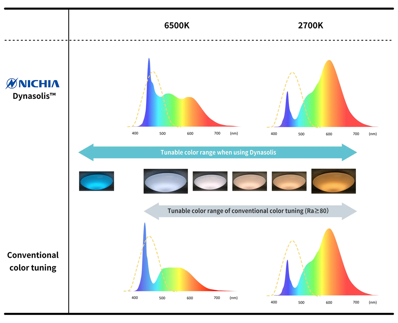 Nichia’s Dynasolis™ LED technology sets a new standard in human-centric lighting by combining advanced spectrum tuning with high CRI and efficiency. Whether in offices, schools, healthcare facilities, or homes, Dynasolis™ enhances physical and mental well-being, making it the ideal choice for creating optimal indoor lighting environments.
